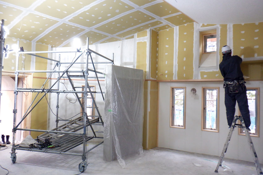 弊社が設計し、7月3日に着工した田村市の教会の進歩状況です。11月にコンクリートを打設し、外装がほぼ完了しました。内装工事に着手しています。